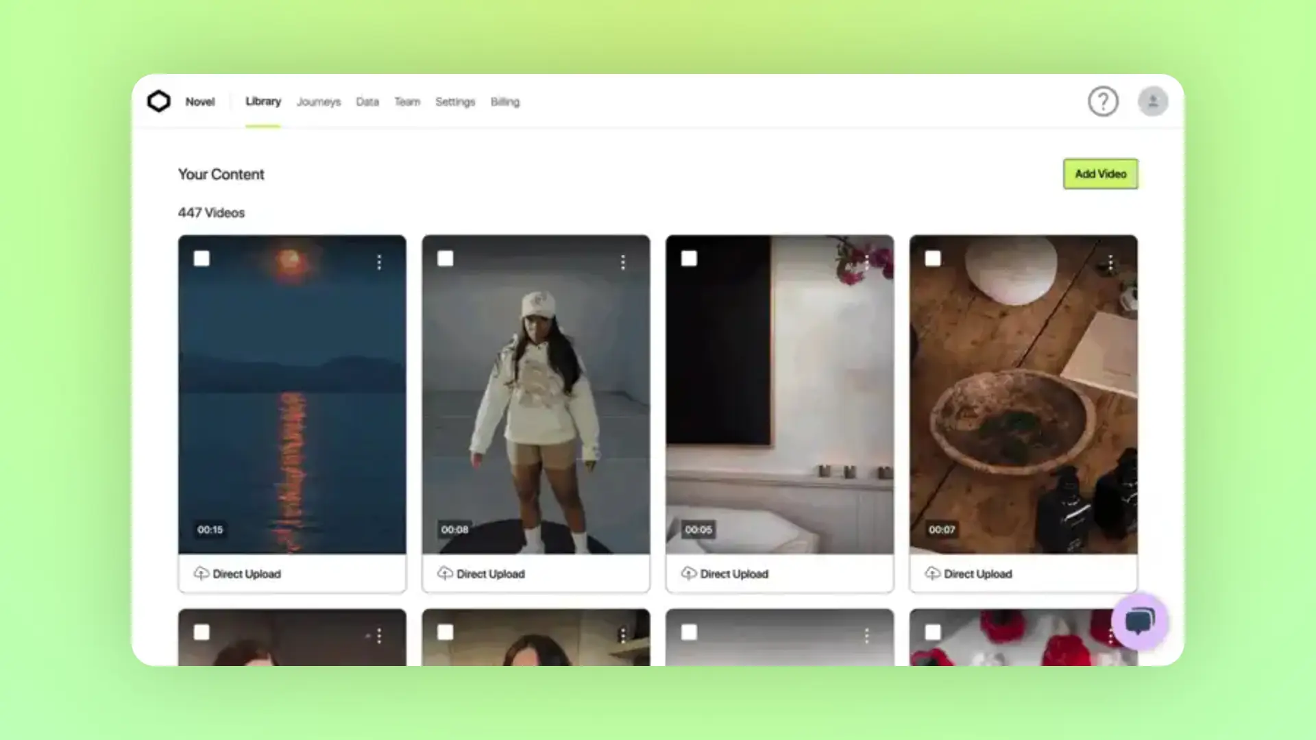 If you are onboarding to Novel for the first time and uploading videos during this process, you will be directly placed into the Novel studio.