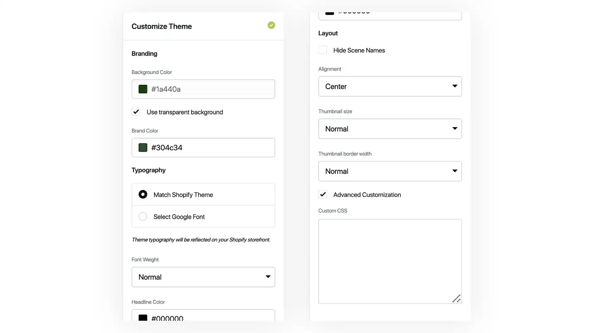Font Style | Match Shopify Theme, Google Fonts | Option to match the Shopify theme's font or choose a Google Font. |